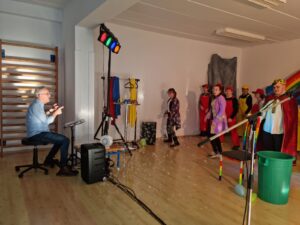 „Im Musical aus dem Land Kunterbunt drehte sich alles um die Farben. Das freundliche Blau, das aufregende Rot und das schöne Gelb stritten darum, wer wohl am wichtigsten sei. Der König trennte sie und feierte jede Farbe tageweise. Doch dadurch entfernten sie sich voneinander und verblassten. Erst im letzten Moment konnte der König das Unheil abwenden und den Regenbogen wieder zum Strahlen bringen. Ein Glück, wie Darsteller Max findet. Ist es doch bei den Menschen ähnlich: Alle sind verschieden, gehören aber irgendwie zusammen.“